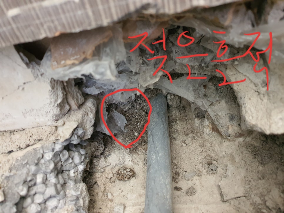 실제 현장 사례를 보면, 배수관에서 나온 물코덩어리(슬러지)가 배수관을 막고 있어 물 배수가 전혀 되지 않는 경우도 있었습니다 .