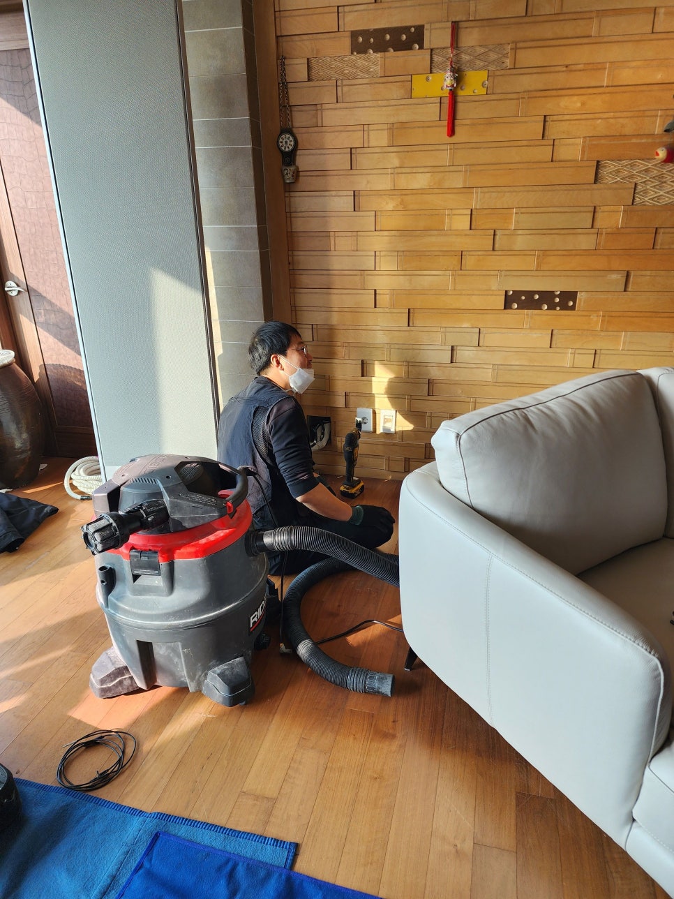 고압 에어로 해결되지 않는 경우 진공 청소기로 빨아들이는 방식을 병행합니다.