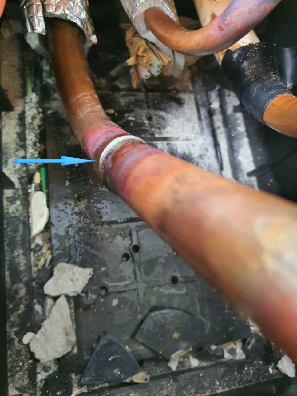 ④ 배관 단열재(보온재) 파손에 의한 극심한 '결로 누수'