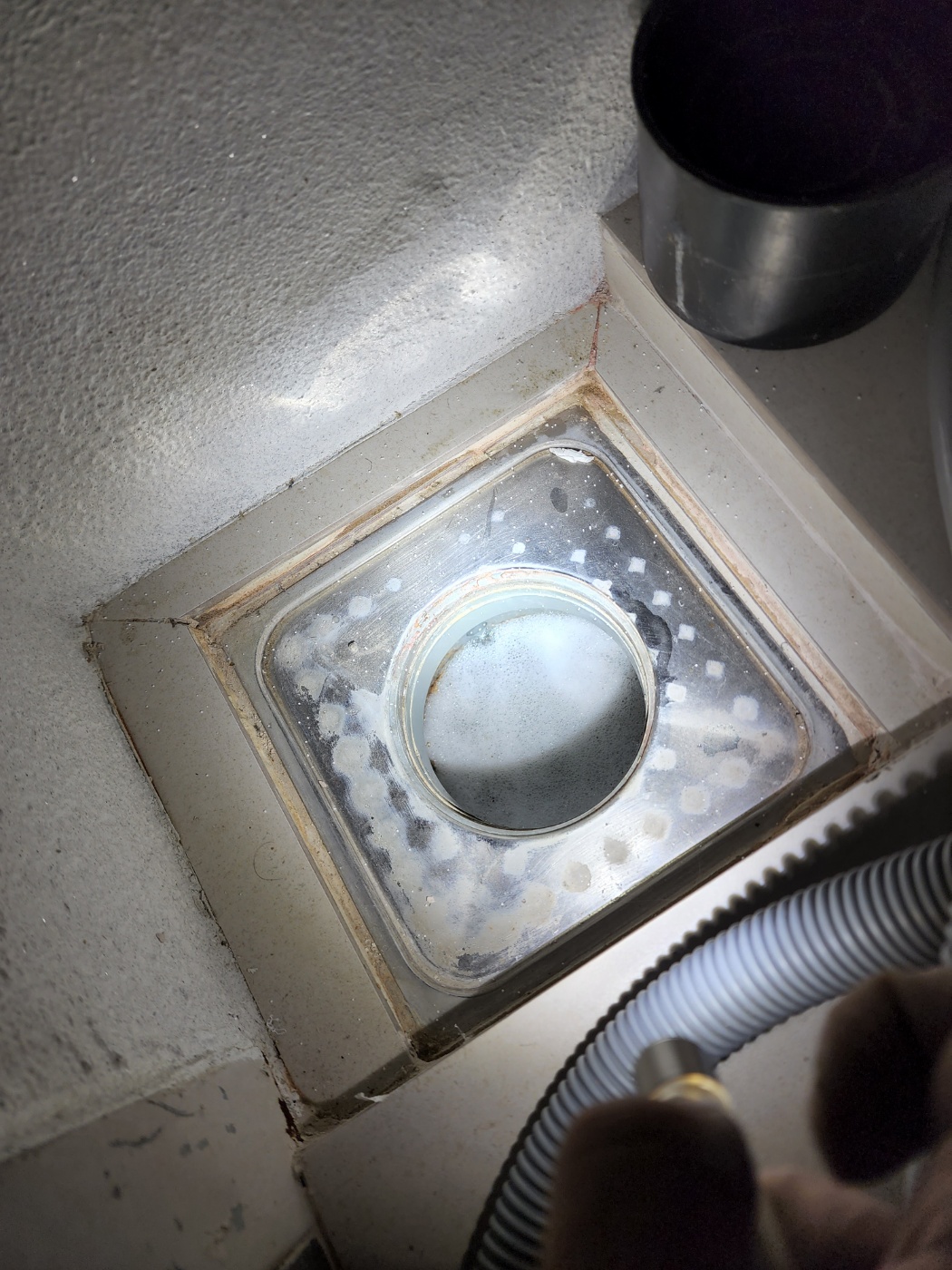 ① 드레인 배관 내부의 '슬러지(물때)' 적체