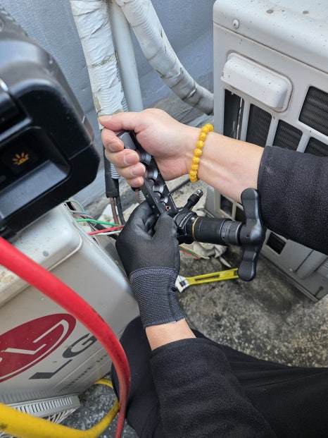 냉매 정량 충전: 에어컨 자체 용량과 배관 길이에 따른 추가 충전량을 정확히 계산하여 주입합니다 .