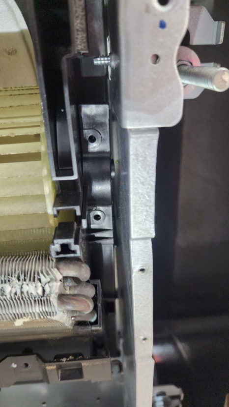 천장 속에 배관을 밀어 넣는 과정에서 무리하게 힘을 주어 배관이 종잇장처럼 구겨지는 현상입니다. 꺾인 부위는 냉매의 흐름을 방해할 뿐만 아니라 압력이 집중되어 결국 터지게 됩니다.
